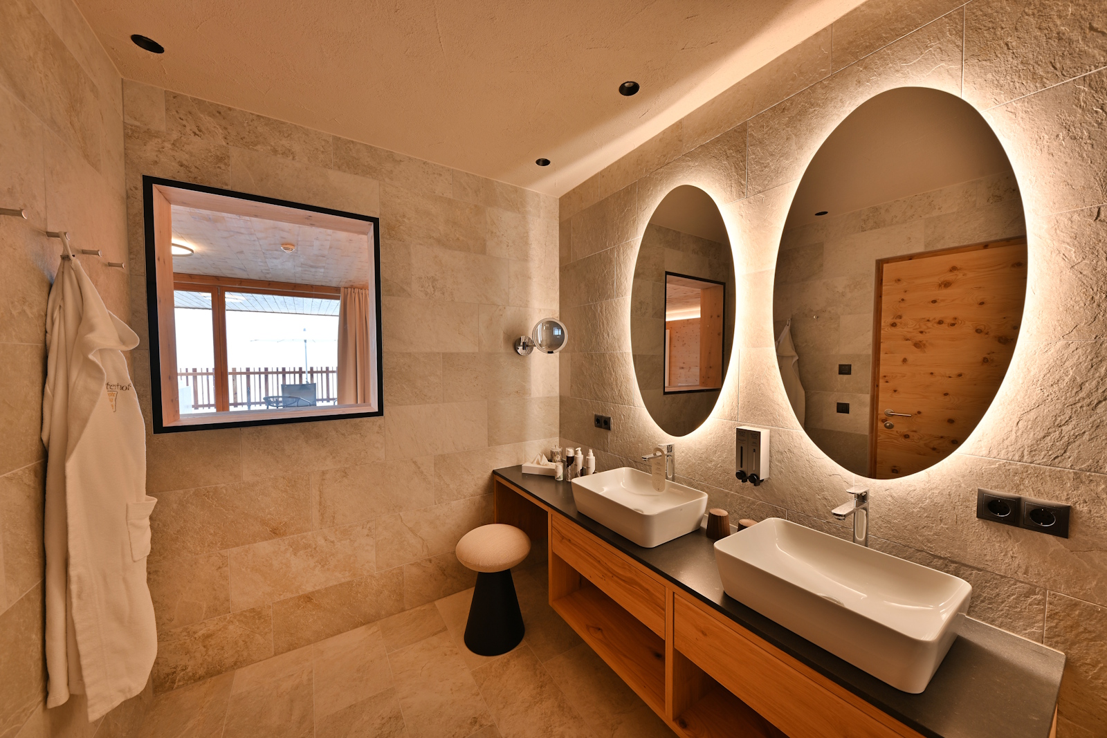 Zwischen Ende März bis Ende Juli wurde unter anderem das Stammhaus neu errichtet und dem restlichen Stil des Hauses angepasst. Die neue Lobby ist dabei mehr als nur ein Eingangsbereich – sie ist ein Statement. Schon beim Eintreten spüren Gäste die Großzügigkeit und Offenheit, die das neue Atrium ausstrahlt. Eine elegante Treppe zieht sich als Blickfang durch den Raum, verbindet Etagen und schafft zugleich ein Gefühl von Leichtigkeit. Glasfronten holen das Panorama direkt ins Haus und lassen den Tratterhof mit der umliegenden Bergwelt verschmelzen.