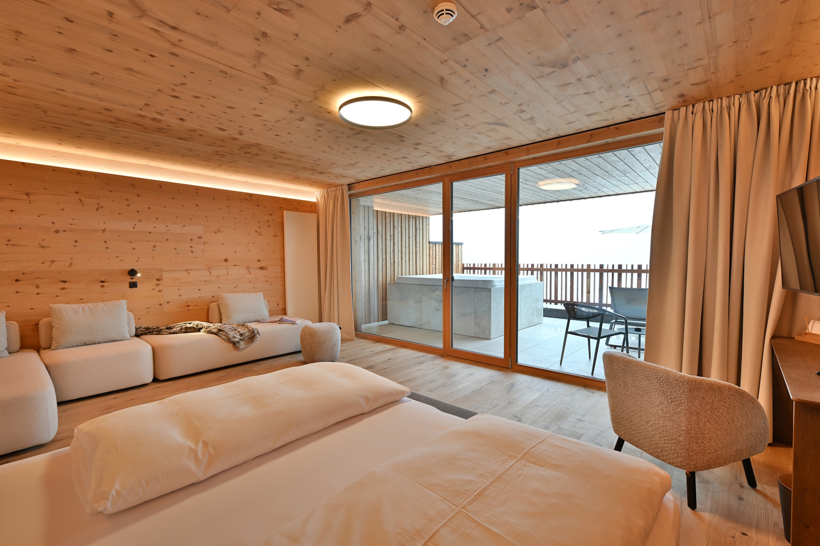 Für Paare wurden exklusive Suiten mit privaten Whirlpools auf der Terrasse geschaffen. Hier lassen sich romantische Stunden verbringen, mit Blick über die Bergwelt und dem Gefühl, dem Alltag weit entrückt zu sein. Familien freuen sich über großzügige Familiensuiten mit separaten Schlafzimmern und getrennten Bädern. Und wer das Besondere sucht, findet es in den Pool Chalets: private Sauna, große Terrasse und ein eigener Pool – Luxus, der gleichzeitig bodenständig bleibt.