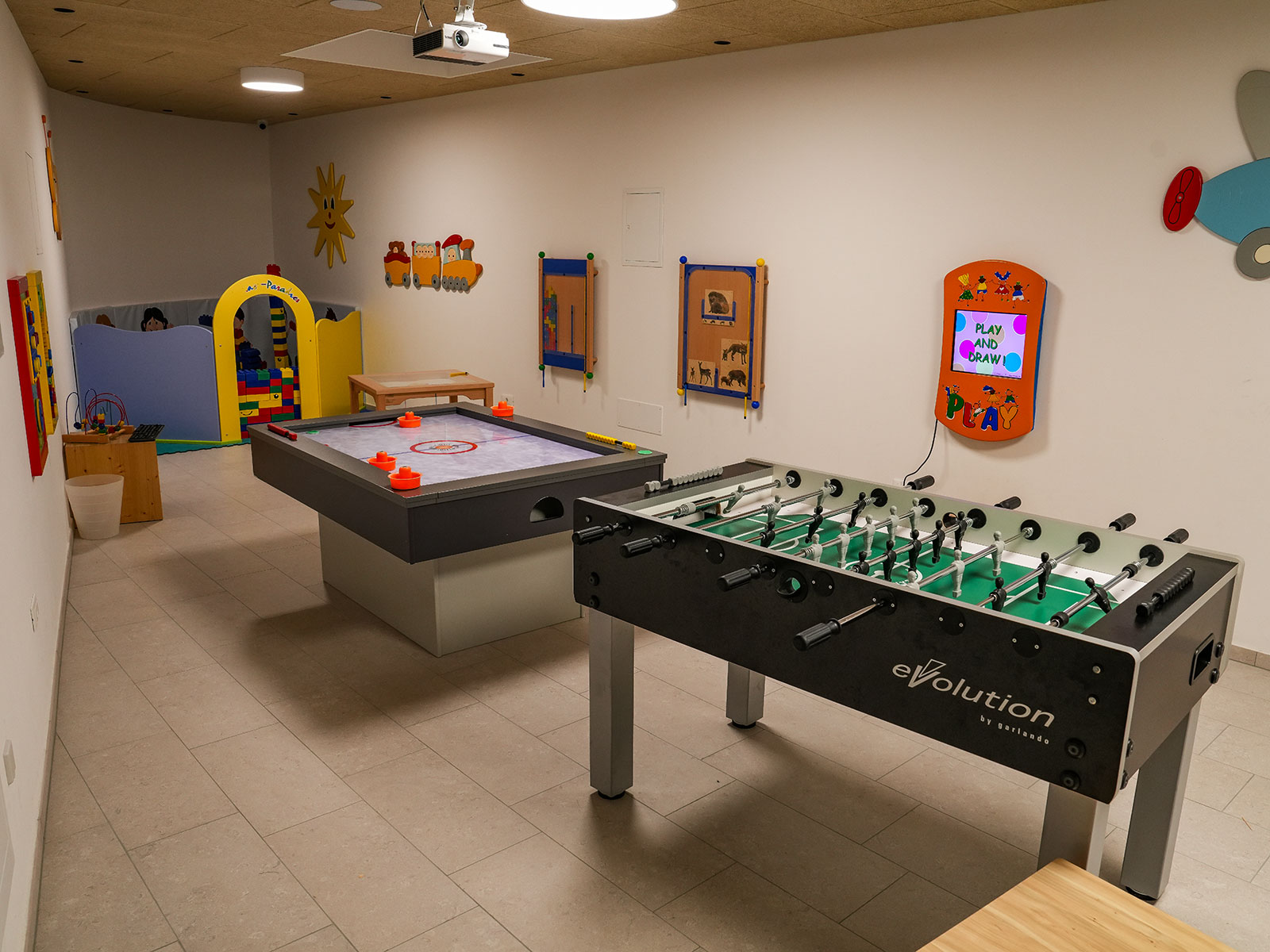 Für die kleinsten Gäste gibt es einen eigenen Spiele-Bereich, bei dem man unter anderem Tischfußball spielen kann.