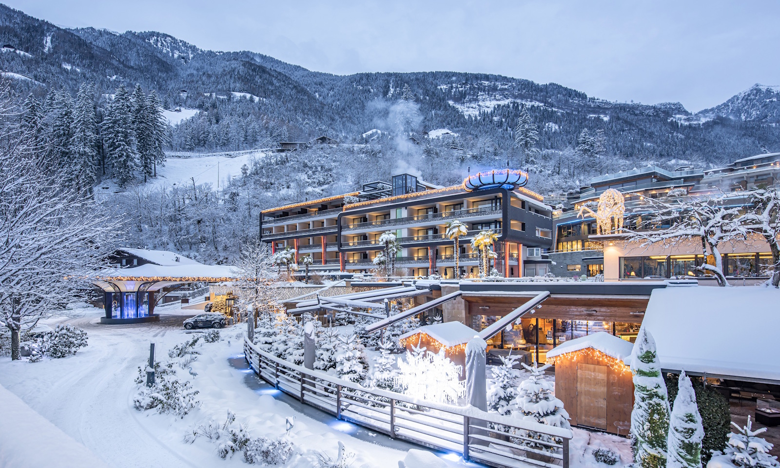 Besonders eindrucksvoll ist der Wellnessbereich: 25 Saunen – darunter die preisgekrönte See-Event-Sauna –, 12 beheizte Pools und ein Infinity-Pool mit Blick auf die schneebedeckten Gipfel schaffen perfekte Rückzugsorte nach einem Tag im Schnee. Familien lieben den Acqua Family Parc, während Genießer in der Gourmetstube 1897 oder im ersten Teppanyaki-Restaurant Südtirols kulinarische Höhepunkte erleben. Romantische Fackelwanderungen machen die Winterabende unvergesslich.