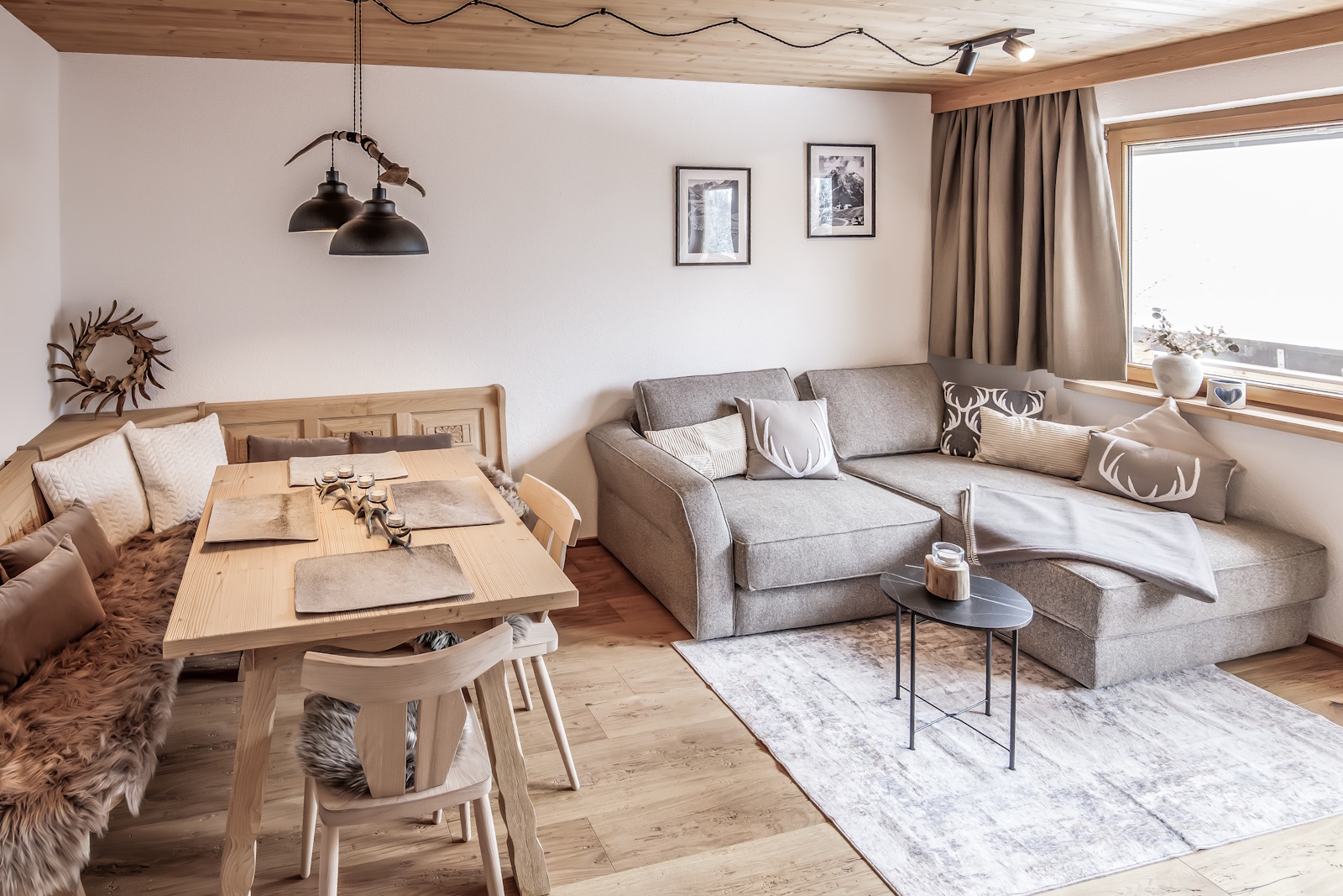 Die Apartments verbinden alpinen Chalet-Stil mit zeitgemäßem Design, bieten großzügige Wohn-Essbereiche, voll ausgestattete Küchen und Wellnessbäder. Ski-in/Ski-out zur Jöchelspitze ist weiterhin möglich, ergänzt durch Frühstücksservice, digitale Anreise, Garten- und Begegnungsbereiche sowie ein familien- und hundefreundliches Konzept.