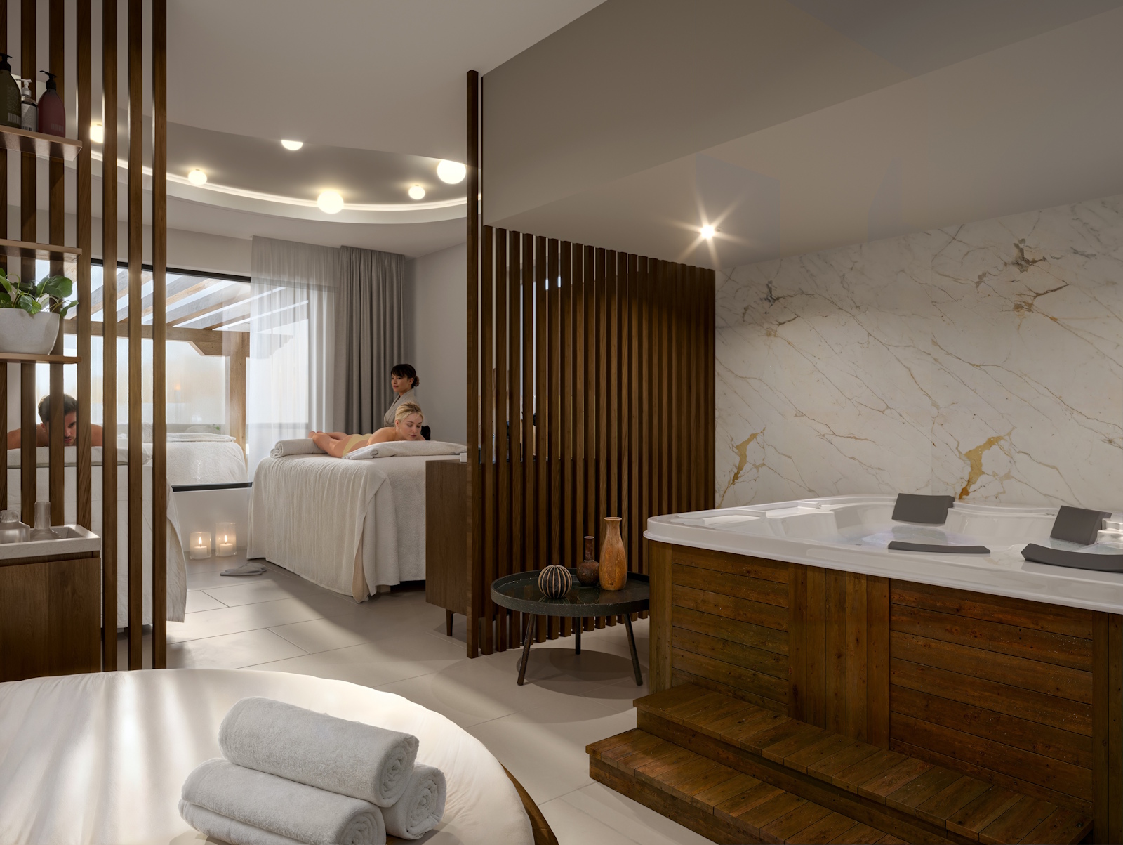 Insgesamt stehen Familien und Erwachsenen über 4.000 Quadratmeter Wellnessfläche zur Verfügung – mit klar getrennten Bereichen für Ruhe und Aktivität.