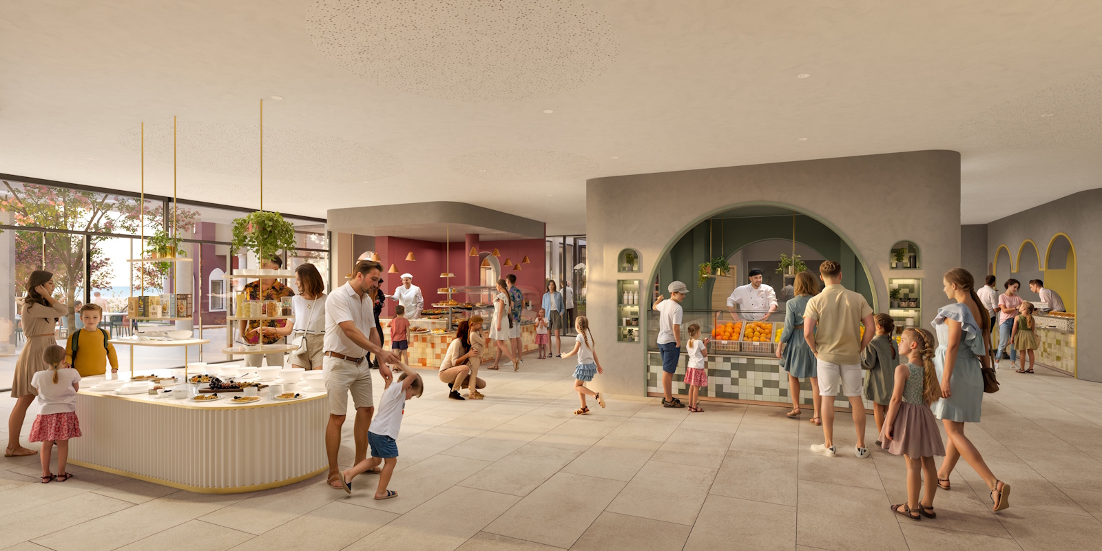 Genuss hat hier viele Gesichter. Morgens das Lieblingsfrühstück der Kinder, mittags ein Snack vom Strandkiosk, abends ein entspanntes Dinner mit Blick auf das Meer. Drei Restaurants – darunter ein eigenes Kinderrestaurant – sowie Buffetstationen und Loungebar bieten Vielfalt, die sich mühelos in den Rhythmus des Familienurlaubs einfügt.